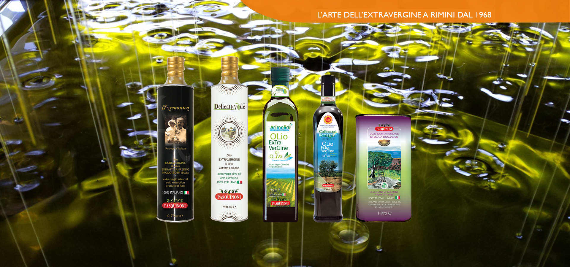 Per l'olio, naturalmente si parla dell'olio extra vergine di oliva Pasquinoni, l'oleificio che da oltre 50 anni è leader nell'innovazione tecnologica e nella selezione delle migliori olive nostrane. Proponiamo una selezione dei migliori olii prodotti del nostro frantoio artigianale.